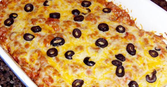 2. Mix in olives, chilies, tomatoes, taco sauce and refried beans. Stir mixture thoroughly, reduce heat to low, and let simmer 15-20 minutes.