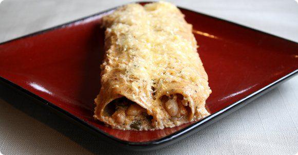 2. Spray a 9x13 baking dish with nonstick spray. Fill each tortilla with about 1/4 cup of filling, roll and place in pan (don’t bother folding ends).